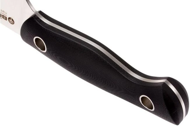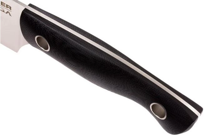 This Böker Saga santoku is perfect when cutting, crushing and scooping various ingredients. It truly is a very multi-functional knife! Because of the two characteristic holes in the handle this santoku is also a sight for sore eyes.