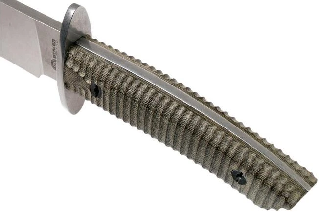 The Böker Arbolito Esculta Micarta 02BA593M is a large bowie outdoor knife. It is the ‘baby’ brother of the Gigante, even though it is still quite large with its 16.5 cm blade. You use the Böker Esculta for all-round outdoor tasks, but also for hunting.