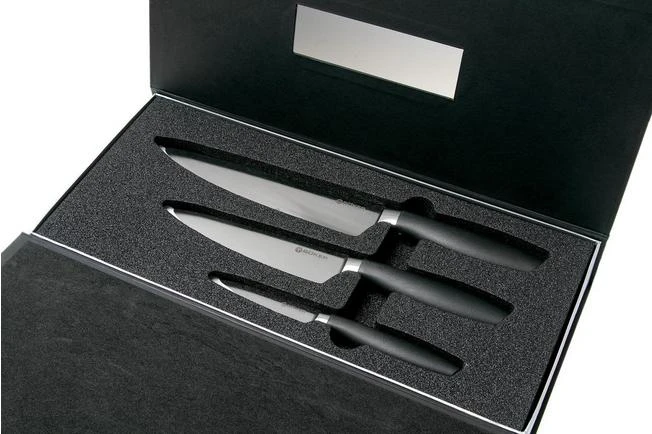 This 3-piece Böker Core Professional knife set – Bo130890SET contains: Two chef’s knives, one utility knife and a stunning storage box made from solid cardboard with an interior of foam rubber to protect the knives. With this set you will have the right knife at hand for each small or large task in the kitchen!