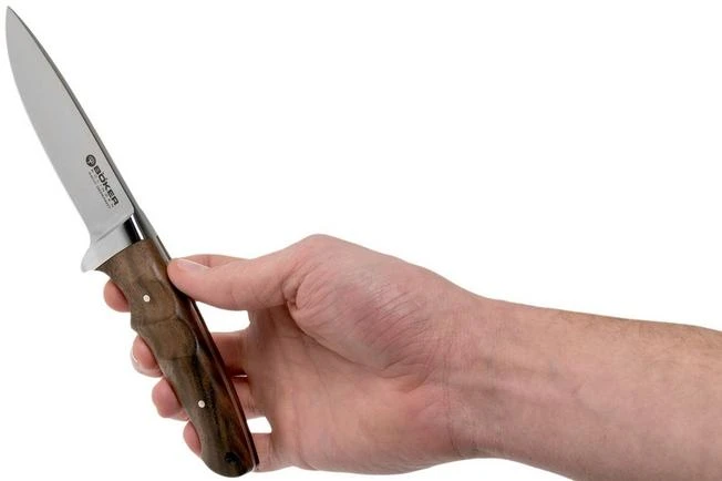 The Böker Integral II is a large and solid fixed hunting knife. Unique about the Integral is the construction of the blade and the handle. The knife is built on an integral frame. This means that the blade, the tang of the handle and the bolsters are forged from the same piece of 440C-steel. As such the knife is incredibly strong. When you hold it you immediately know that you are dealing with a decent and good knife.