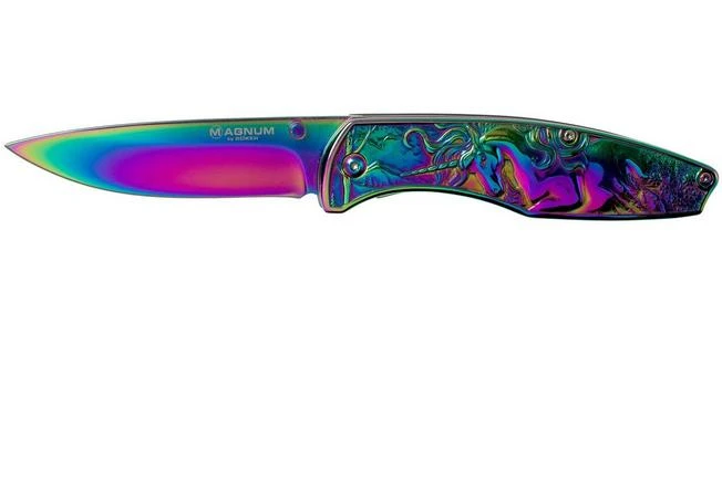 The Böker Magnum Anna’s Rainbow Unicorn 01MB231 is a remarkable pocket knife, from the same collection as the famous Böker Rainbow Mermaid. While the Mermaid is in charge of the underwater world, this Anna’s Rainbow Unicorn is in charge of the land above.