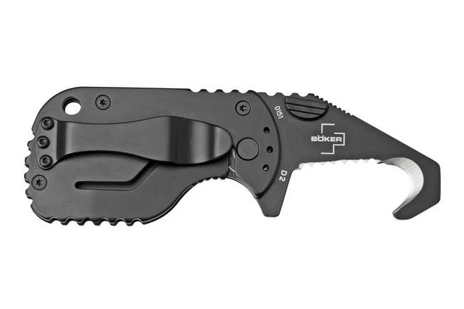 The Böker Plus Rescom 2.0 is a modern EDC knife, specifically designed for rescue workers. The knife is small enough to easily take with you. The Rescom 2.0 is enhanced with a serrated blade with cutting hook. Perfect when cutting through seatbelts and other strong materials. You open the blade with the thumb studs. Once opened the blade is locked by a solid framelock.
